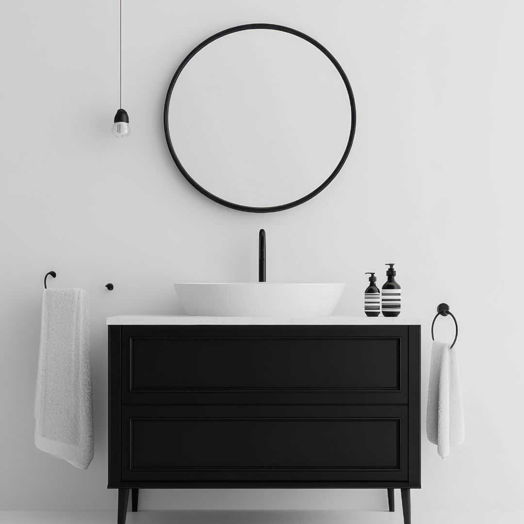 • Combinação com cores e materiais: Espelhos redondos ficam incríveis quando combinados com bancadas de mármore, madeira ou tons neutros, trazendo equilíbrio visual ao banheiro.